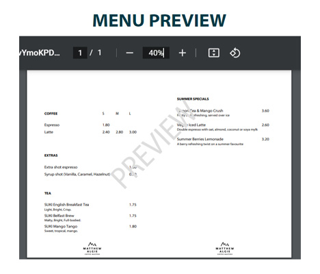Hit ‘Submit’ to send a copy of your menu straight to your inbox. From there, you can print it and use it in your café.